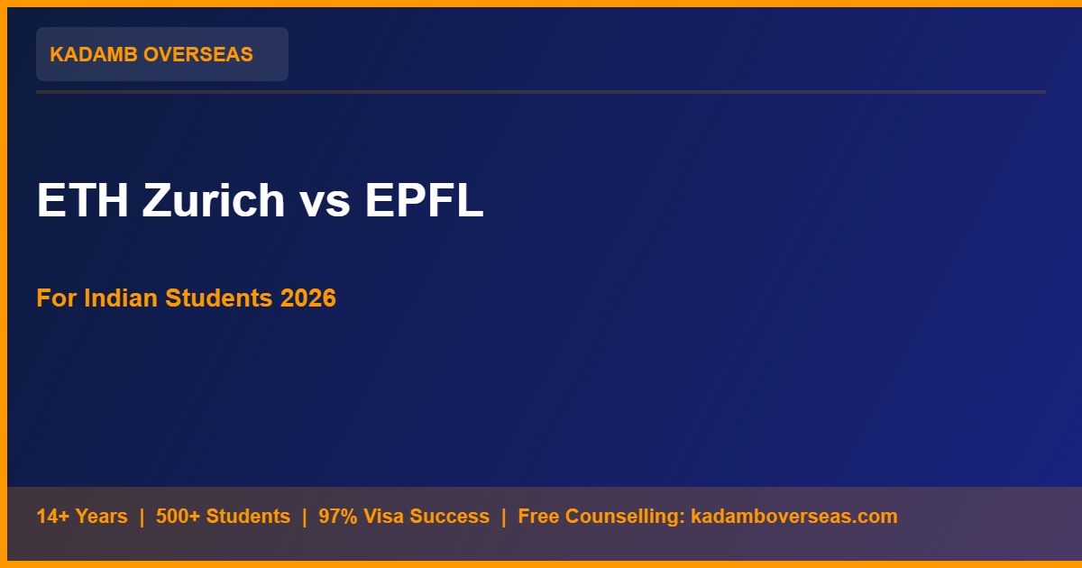 Two of the world’s top 15 universities — ETH Zurich (#7 QS) and EPFL (#17 QS) — are both in Switzerland. Indian students consistently ask: which is better? Here is an honest, data-driven comparison across 8 key factors to help you choose in 2026.