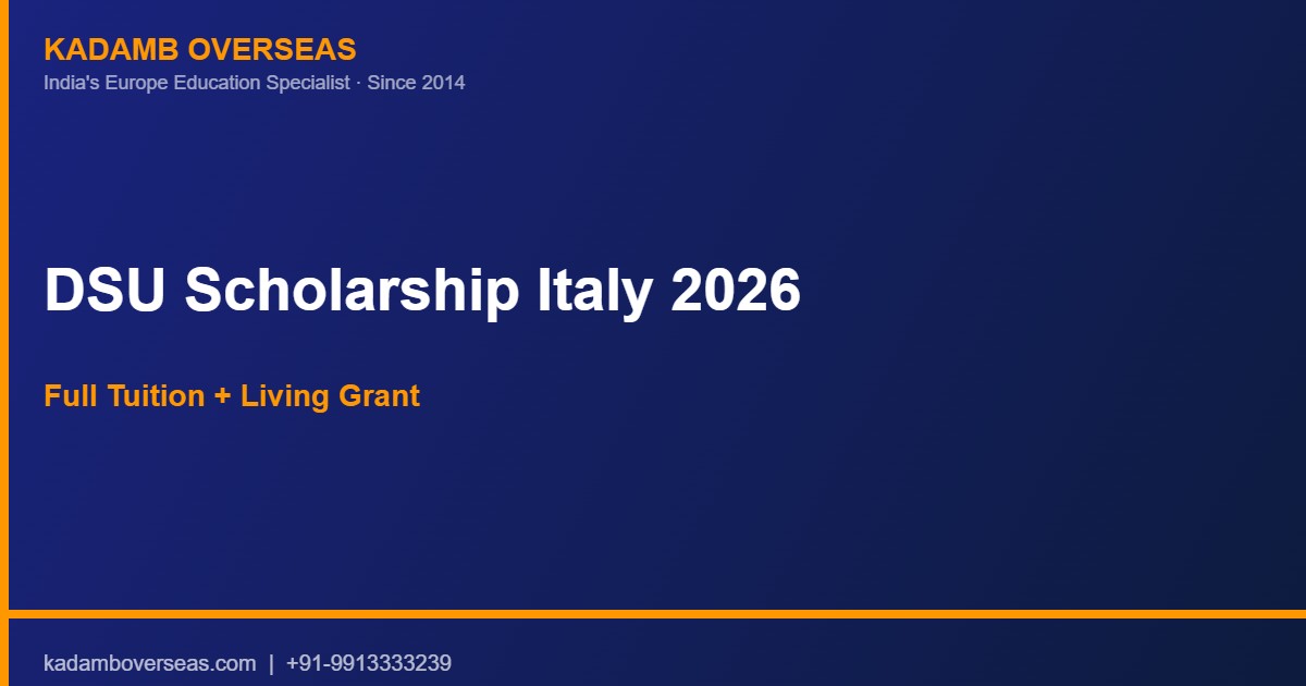 Bottom Line Up Front: The DSU (Diritto allo Studio Universitario) scholarship is Italy’s national right-to-study program. For qualifying Indian students, it provides full tuition waiver AND an annual living grant of €2,500–5,500 (₹2.3–5L). It is available at every public Italian university. The key requirement is proving your family income using an ISEE parificato — a document that Kadamb Overseas prepares for all Italy-bound students at no extra charge.