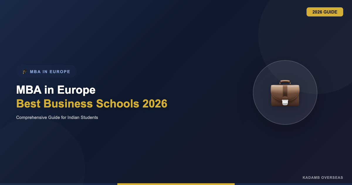 In this comprehensive guide crafted by Kadamb Overseas, Ahmedabad, we cover everything an Indian student needs to know about pursuing an MBA in Europe in 2026 — from the best countries and top-ranked business schools to detailed fee structures, scholarship opportunities, admission requirements, post-MBA salary expectations, work visa options, and return on investment. This is your definitive roadmap to making an informed decision about your MBA journey in Europe.