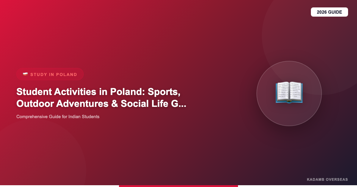 At Kadamb Overseas, with 14+ years of experience guiding 500+ Indian students to European universities and a 97% visa success rate, we know that student well-being goes beyond academics. This guide covers every activity, sport, and social opportunity available to Indian students in Poland — from hiking in the Tatra Mountains to joining cricket clubs and celebrating Diwali with fellow Indian students.