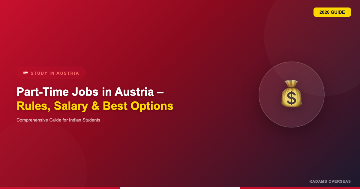 Disclaimer: The information provided in this article is based on Austrian government regulations, collective bargaining agreements, and real student experiences as of March 2026. Wage figures, tax thresholds, and legal provisions are subject to annual updates. The conversion rate used is EUR 1 = ₹90 (approximate). Always verify current figures with official Austrian government sources (AMS, Finanzamt, BMI) and consult a qualified immigration advisor for your specific circumstances. Kadamb Overseas provides educational counselling services and is not a legal or tax advisory firm.
