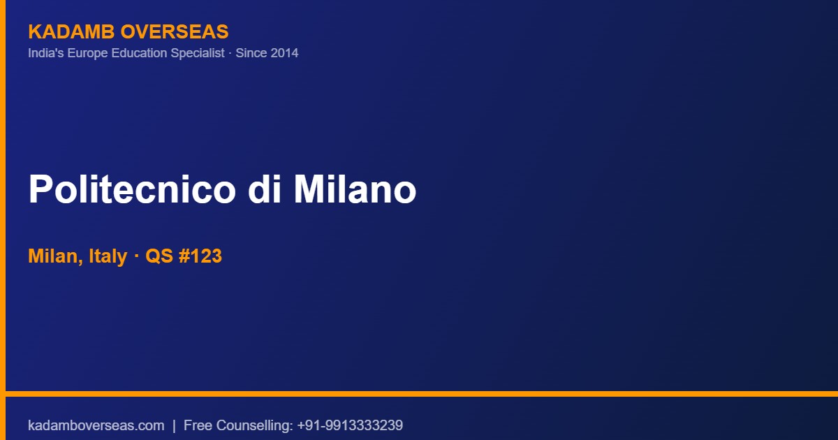 Bottom Line Up Front: Politecnico di Milano (PoliMi) is Italy’s #1 engineering university, ranked #123 globally (QS 2025). Indian students pay ₹3–8 lakh/year in tuition based on family income. DSU Lombardia scholarships can reduce fees to zero and provide a living allowance. Admission requires 70%+ academic record and IELTS 6.5.