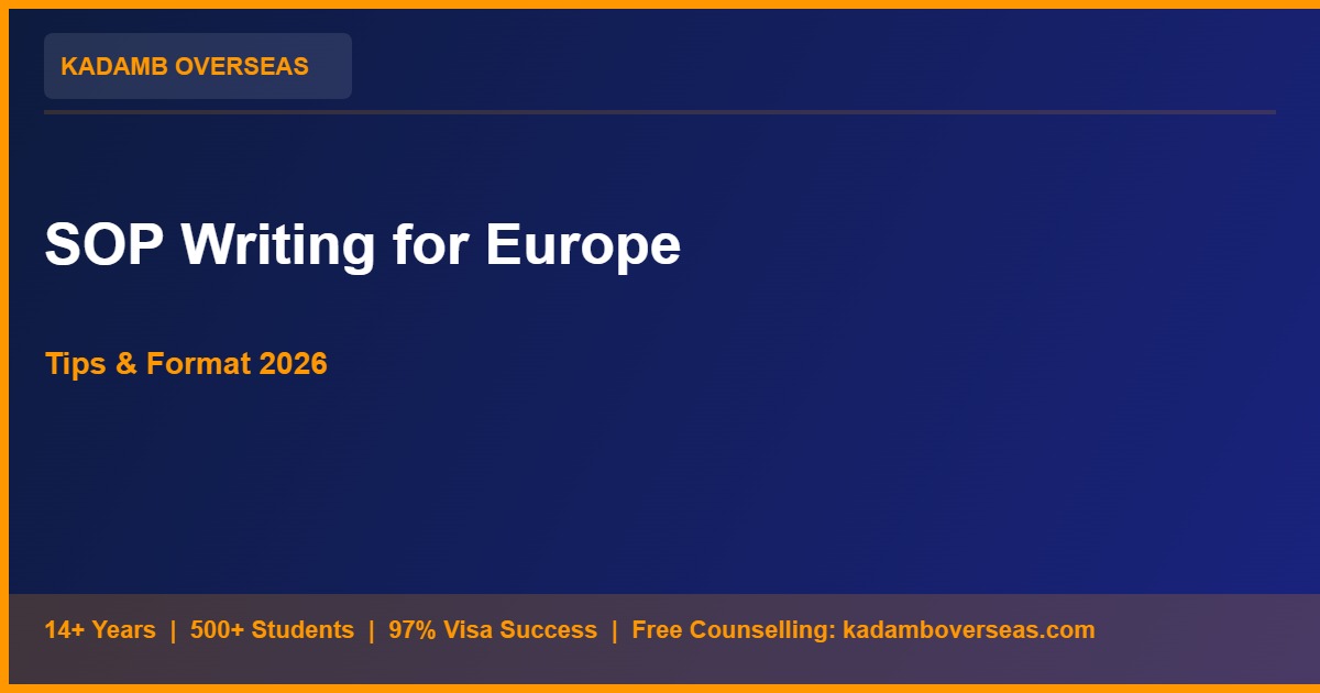 Kadamb Overseas provides SOP review and writing support as part of our free counselling service. We have reviewed 1,000+ SOPs for European universities. Book a free session to get expert feedback on your SOP. Also read our Europe visa guide for the next step after admission.