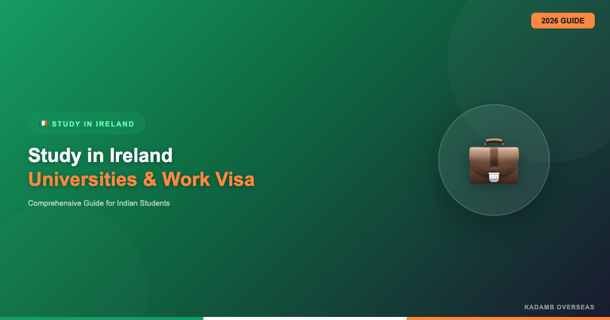 Study in Ireland for Indian students 2026 is one of the smartest decisions you can make — with world-ranked universities, affordable tuition starting from EUR 10,000/year (approximately ₹9 lakh), all courses taught entirely in English, a booming tech and pharma job market, and the highly coveted 2-year post-study work visa (Third Level Graduate Programme), Ireland offers Indian students an unmatched combination of academic excellence, career opportunity, and quality of life. Ireland is home to the European headquarters of Google, Apple, Meta, Microsoft, Intel, Pfizer, and over 1,000 multinational companies — and its government actively encourages international graduates to stay, work, and build careers. At Kadamb Overseas (Ahmedabad), we have guided hundreds of students from Gujarat and across India to top Irish universities since 2010, and the demand for Ireland as a study destination has surged by over 60% in the last three years alone. Whether you are considering a Master’s in Computer Science at Trinity College Dublin, Data Analytics at UCD, Pharmaceutical Sciences at UCC, or an MBA at DCU, this comprehensive 2026 guide covers everything you need — from university rankings and fees to scholarships, visa procedures, accommodation, part-time work rules, and step-by-step application timelines.