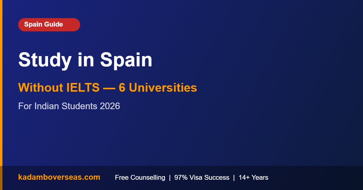 Bottom line up front: Yes, Indian students can study in Spain without IELTS in 2026. Many Spanish public universities accept internal English proficiency tests, prior English-medium education certificates, or a simple declaration letter. Tuition fees start from ₹1 lakh/year and the student visa success rate is high.