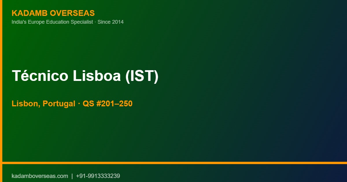 Bottom Line Up Front: Instituto Superior Técnico (Técnico Lisboa), part of the University of Lisbon, is Portugal’s #1 engineering school and ranks QS 201–250 globally. For Indian students it offers English-medium Master’s programs in Computer Science, Electrical, Civil, and Aerospace Engineering at just ₹1.5–3 Lakh/year. Lisbon is one of Europe’s most affordable and livable capitals — total annual cost ₹6–9 Lakh.