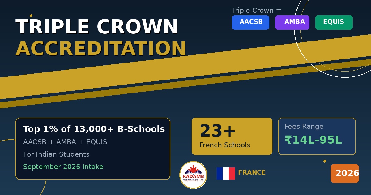 Only 1% of the world’s 13,000+ business schools hold the prestigious “Triple Crown” accreditation—making it the ultimate gold standard for MBA and management education quality. For Indian students investing ₹25-90 lakh in a business degree abroad, choosing a triple-accredited school isn’t just prestigious—it’s essential for guaranteed global recognition, superior career outcomes, and maximum ROI on your education investment. In this comprehensive 2026 guide, we’ll explain exactly what triple accreditation means, list every French business school with the Triple Crown, and show you why this matters more than any ranking.